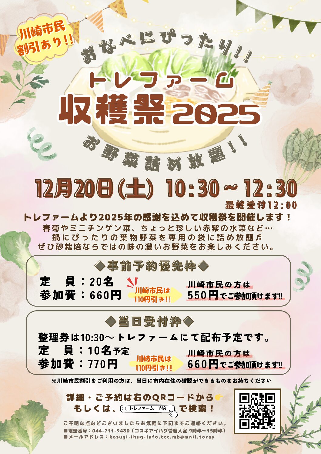 ※栽培予定の野菜については、コスギアイハグSNSにて随時お知らせいたします。